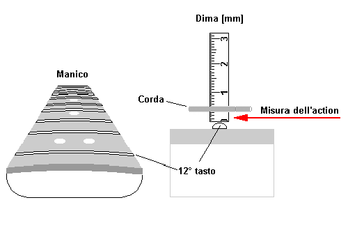 L'altezza delle corde, che viene misurata tra la cima del 12° tasto e la parte esterna della corda, viene detta "action". La action delle corde determina due cose essenziali: pulizia di suono e velocità di esecuzione (comfort). Più la action è alta e più il suono è pulito, a discapito del comfort.