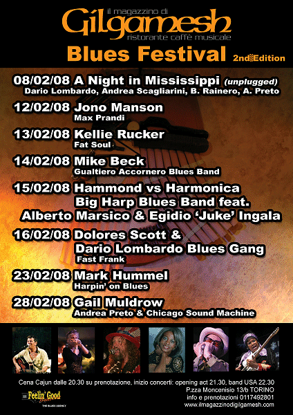 Il famoso ristorante caffè musicale torinese il magazzino di GILGAMESH nel febbraio 2008 propone la seconda edizione del Blues Festival ricca di artisti di prestigio internazionale.